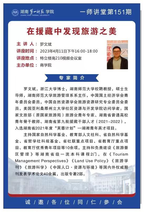 学术讲座预告:在援藏中发现旅游之美