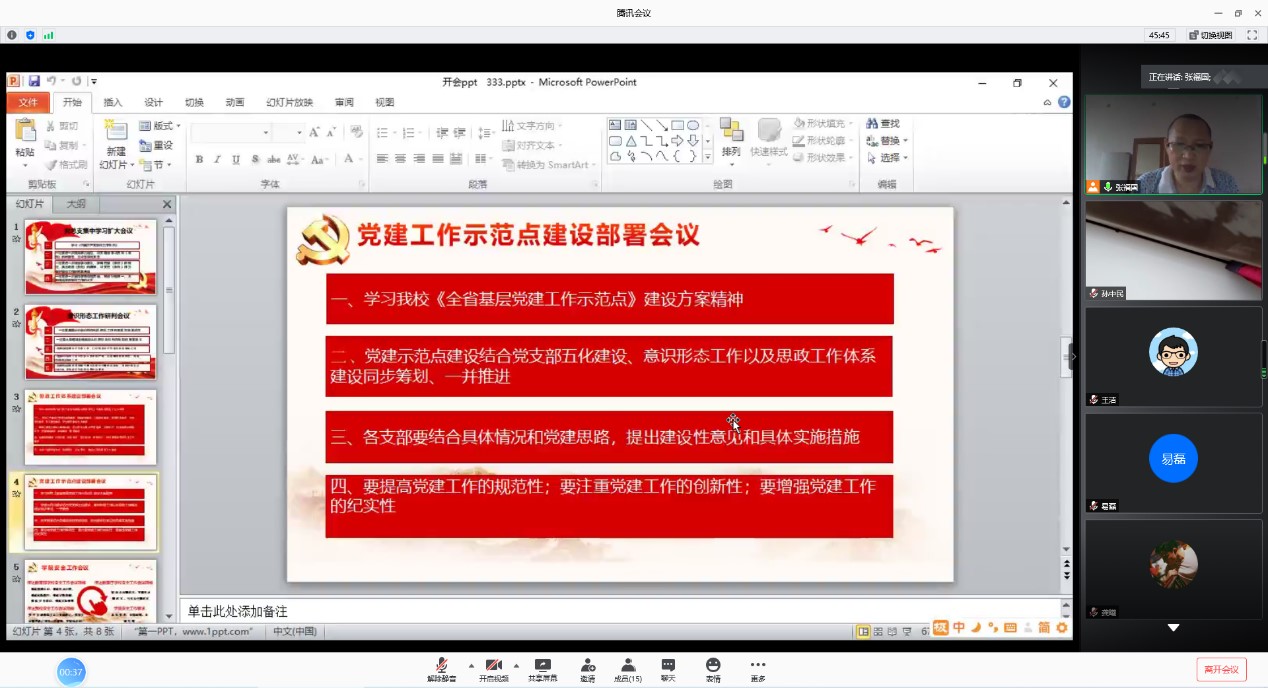 会上,张福国组织学习公司《全省基层党建工作示范点》建设方案精神,要求各支部结合党支部五化建设、意识形态工作以及思政工作体系建设同步筹划、一并推进党建示范点的建设工作;各支部要学习员工党支部的成功经验,积极创新,结合具体情况和党建思路,提出建设性意见和具体实施措施;具体工作上要提高党建工作的规范性,注重党建工作的创新性,增强党建工作的纪实性。