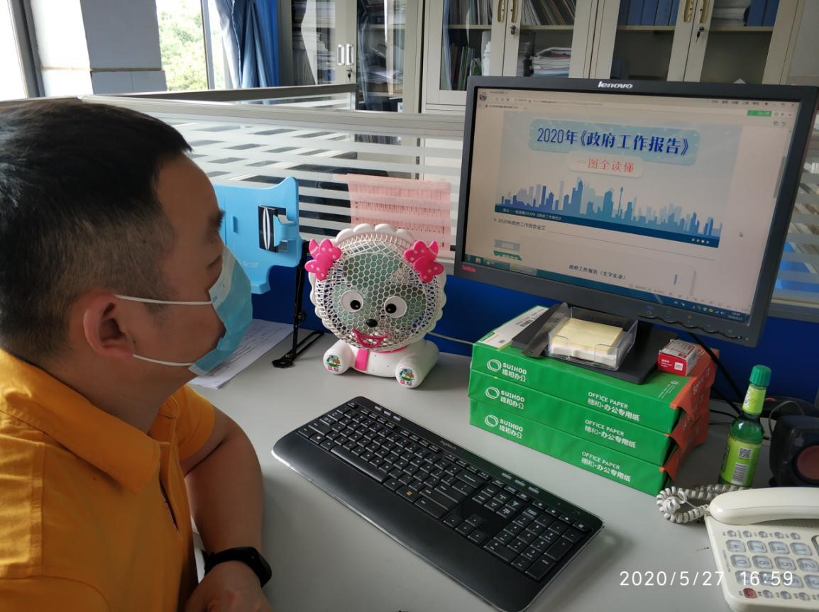 5月22日,李克强总理在第十三届全国人大三次会议上作政府工作报告。行政支部根据防疫工作要求,积极组织形式多样的学习活动,以党员自学+线上讨论方式开展5月党日活动。