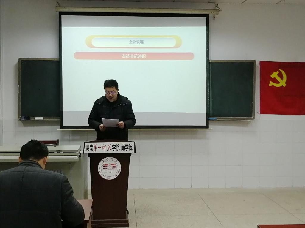 为全面学习贯彻党的十九大精神,深入贯彻落实习近平新时代中国特色社会主义思想,落实公司《湖南第一师范公司党总支党建述职评议考核方案》,公司党总支于2019年1月8日16:00在玉衡南604开展支部书记双述双评会议。会议分两个阶段,首先集中听取支部书记述职并评议考核,全体教职工党员和员工党员出席;然后各支部分别开展民主评议党员和评优工作。