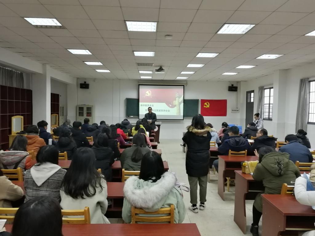 党总支下辖教工1、2、3支部书记,员工1、2支部书记分别汇报了本支部工作情况,对2019年工作提出设想,并接受评议。党员同志们对三位书记的汇报给予充分肯定,就支部今后发展提出了切实宝贵的意见和建议 。