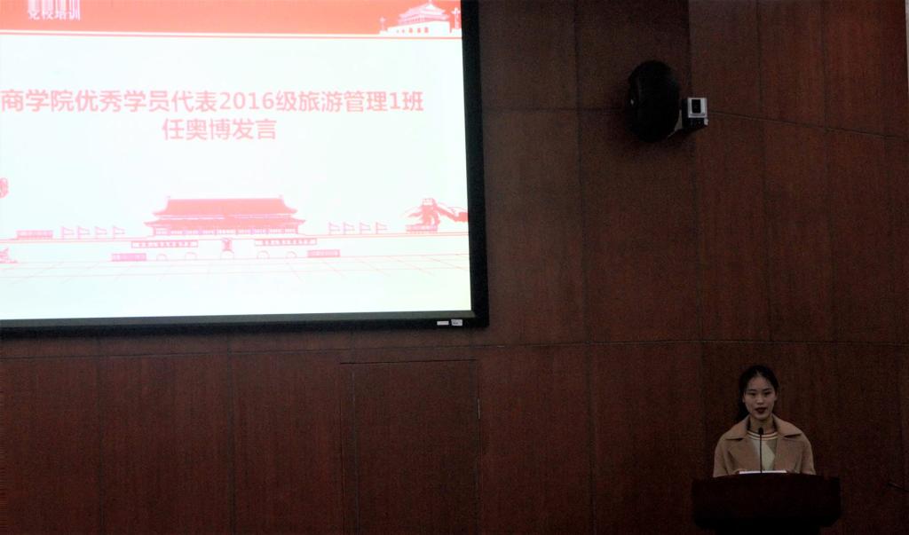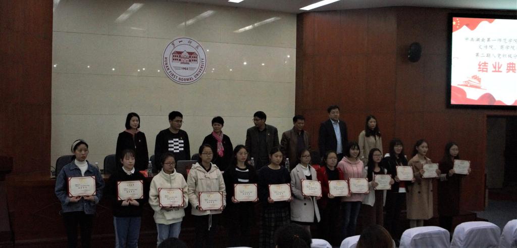 随后,文传院分党校办公室主任罗燕老师宣读在本期培训中13名考试成绩优秀的学员名单 ,公司任奥博,肖婉静、赵蕊、何声竹陈萍5名同志荣获”优秀学员”称号。 随后,公司入党积极份子优秀学员任奥博作为代表发言。会议最后一项,领导老师为13位优秀学员颁发荣誉证书并合影留念。