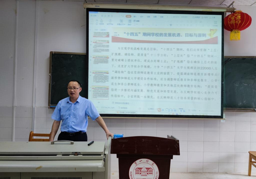 张福国传达了公司第二次党代会《传承红色基因 深化改革创新》工作报告,带领全体教师重温报告内容,回顾过去五年的成绩,强调“十四五”期间公司的发展机遇、目标与原则,明确今后五年的主要工作任务,要求全体教师坚决贯彻执行报告的精神,传承红色基因,深化改革创新,埋头苦干再出发,励精图治争一流,以永不懈怠的精神状态,向前看、朝前走,全力推进“四个一师”建设,为早日建成特色鲜明的师范大学而努力奋斗!