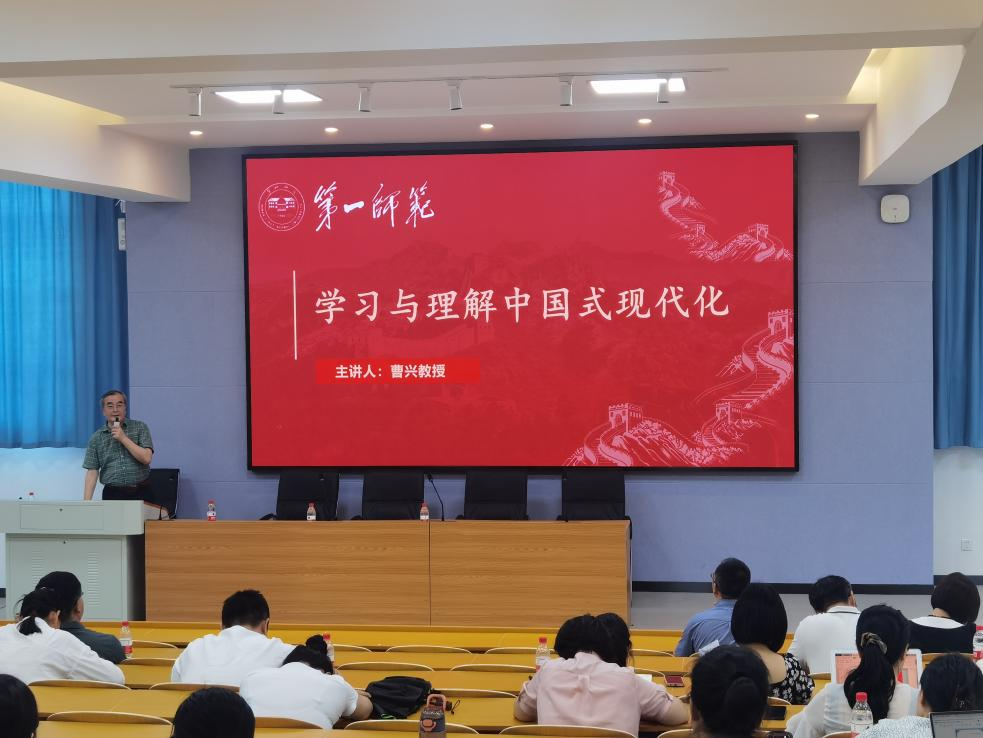 曹兴副董事长以《学习和理解中国式现代化》为题,阐述了中国式现代化的发展历程和逻辑关系,阐明了中国式现代化的本质要求、中国特色、重大原则,提出如何推进现代化建设,为全体党员教师讲了一堂生动的党课。他指出,我们推进的现代化,是中国共产党领导的社会主义现代化,必须坚持以中国式现代化全面推进中华民族伟大复兴,坚持把国家和民族发展放在自己力量的基点上、把中国发展进步的命运牢牢掌握在自己手中。我们以中国式现代化全面推进中华民族伟大复兴,这既是路径,也是目标,也是方向。