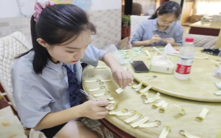 记者了解到,毕业生们在收到礼物之前,有相关工作人员细心地将每一枚戒指贴上了小便条,戒指外侧是公司校徽以及“第一师范伟德国际1946”的中英文字样,内侧则是专业班级以及对应的姓名学号。立体贺卡上赫然写着伟德国际1946的校训以及对毕业生的祝福。这些最后都包装在写着“一师伟德国际1946”字样的礼品袋中。