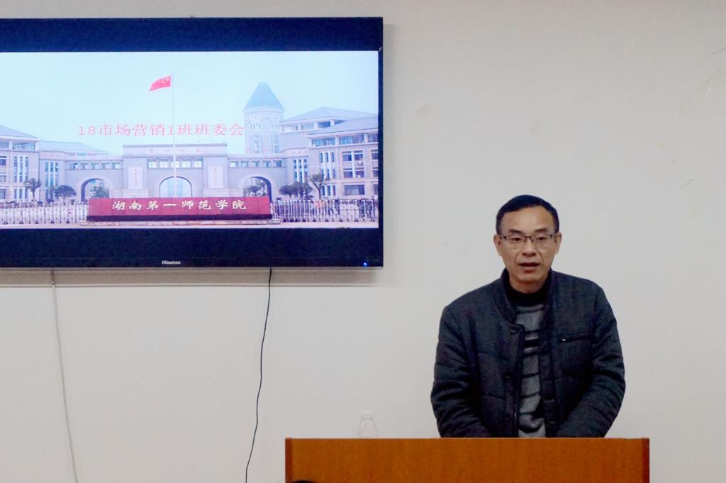 班委会是大学班级的领导核心和支柱,为促进班级工作顺利开展,凝聚班级建设的中坚力量,2018年11月14日上午9点,公司党总支部书记谢培松在玉衡南401教室,组织开展2018级营销一班主题班委会,班委会主题为“班委如何加强自身建设和服务同学”。