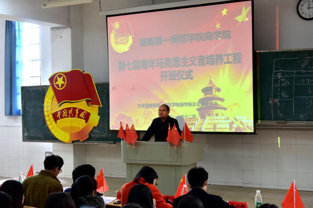 2017年12月4日星期一中午,公司第七届青年马克思主义者培养工程在公司实验楼C栋101举行开班仪式。公司党委书记谢培松教授、学工办全体辅导员参加开班仪式。
