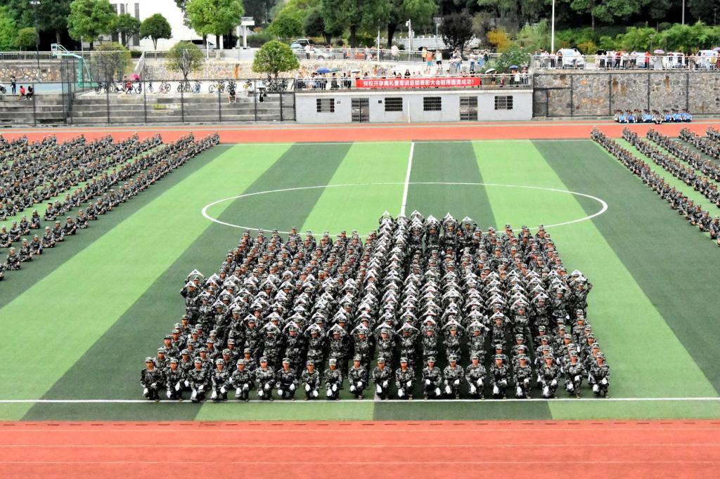大会在庄严的国歌声中拉开了序幕。随后,各教官与新生各持第一师范校旗与院旗从主席台中走过,伴随着激昂澎湃的《分列式进行曲》的响起,来自军训师的20多个方阵在校旗的引领下,迈着矫健的步伐,喊着嘹亮的口号,昂首阔步依次通过主席台。来自公司的12、13、14、15四个方阵步伐整齐,展示了公司新生的团结,凝聚了整个方阵的力量,器宇轩昂地通过了主席台。分列式结束后,公司员工向我们展示了整齐划一的标准军姿动作,同时还有完美的字体方阵向我们展示了丰富多彩的字体与图形。不仅如此,还有水瓶方阵头顶水瓶为我们展示训练动作,赢得了全场的热烈掌声,整齐划一的动作与坚毅的神态获得全场一致好评。汇报表演结束后,党委书记彭小奇教授与长沙航空职业技术公司士官院经理胡德军分别作了总结讲话,他们首先向为军训工作付出辛勤劳动和汗水的教官们致以崇高的敬意和感谢,向圆满完成军训任务的2017级新同学表示了亲切的问候,并充分肯定2017级新生军训取得的成果并就巩固和深化军训成果等方面提出了期望和要求,要求全体员工铭记历史、不忘国耻、肩负使命、奋发有为,切实肩负起每一名青年员工的职责和使命,牢记“落后就要揍打,发展才能自强”。在老师代表、员工代表、新生代表发言结束后,彭小奇教授宣读了关于表彰2017级员工集中军训工作先进集体和先进个人的决定。公司12个宿舍被评为优秀寝室的称号。会上,与会领导分别为获奖的先进集体与个人进行了颁奖。