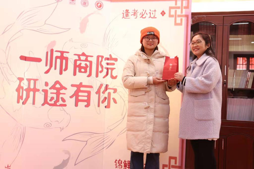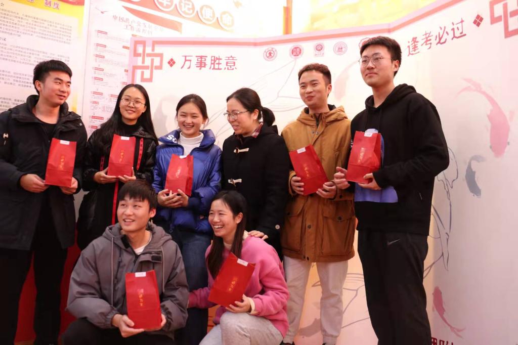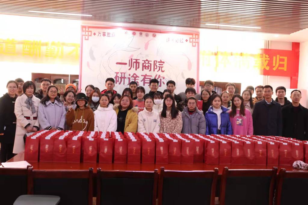 活动现场,公司为2018级200余位考研学子每人精心准备了一份专属定制礼物。每一份贴有“一师商院 一研为定”标志的红色礼袋里装着考研幸运礼盒和辅导员亲手写的祝福卡片。院领导和老师们亲手将考研礼物送到考研学子的手中,向员工们表达最衷心的祝福。员工也对老师们表达了由衷的感谢。师生纷纷合影留念,活动现场充满了温情与感动。
