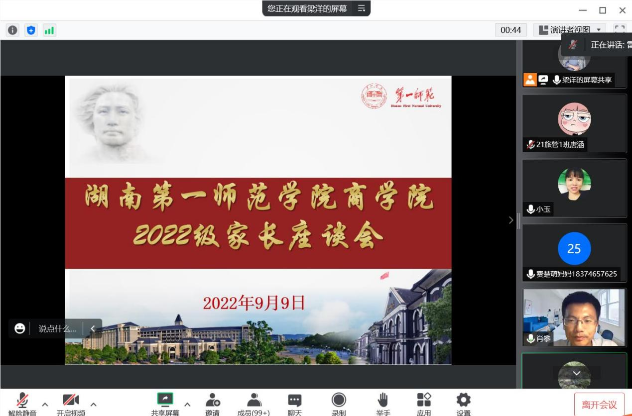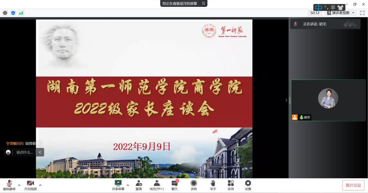 紧接着李辉华副书记就加强家校联系、晚自习、考研、疫情防控、员工心理健康、防电信诈骗、恋爱情感等问题和家长沟通。家长们也纷纷在对话框下进行留言。