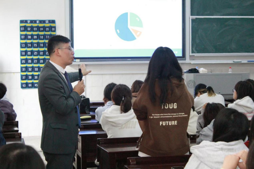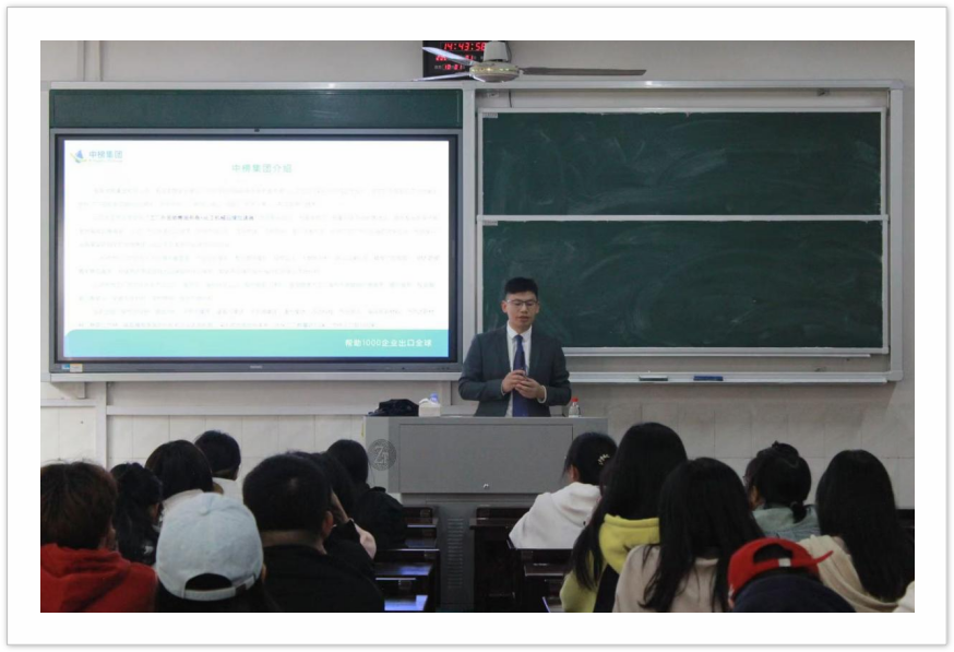 随后,中榜集团董事长黄仁华先生为新生们带来了一场生动而深刻的国贸专业就业指导。他从“我有一个理想”这一朴素而宏大的话题切入,围绕国贸专业的“是什么、做什么、怎么做”进行了深入浅出的讲解。在介绍过程中,黄仁华先生不仅分享了自己的亲身经历,还与同学们进行了亲切的互动,让同学们在轻松愉快的氛围中收获了丰富的知识与经验。黄仁华先生还巧妙地抛出了多个问题,引导同学们深入思考自己的目标与未来。他以哈佛大学的一个著名实验为例,强调了理想与为理想奋斗的重要性,激发了同学们对未来的无限憧憬与热情。