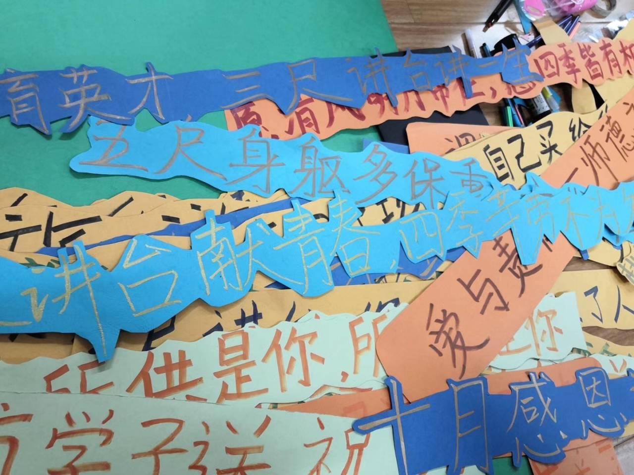 “我们想做你永不折旧的资产”、“所供是你,所需也是你。”于玉衡南楼拾阶而上,迎面而来的是一段段极富商院特色的“土味情话”,一节节阶梯上是一笔一划,商院学子对老师们的浓浓爱意。楼道两旁,一幅幅Q版照片,三尺讲台上的老师的可爱引来众多同学围观拍照。“老师请往右看”,昔日空无一物的灰墙上挂满了商院学子为老师手写的情书,纸短情长,满满一片墙也承载不了商院学子对老师的款款深情。楼里是爱,楼外是情。“学高为师,身正为范;行智为高,创新为院。”玉衡楼墙外,青志协同学们挂上红色横幅,崇师风气弥漫一师校园。明信片、贺卡、马克杯、钥匙挂件,员工们的小小心意让商院全体教职员工过上了一个惊喜不断的教师节。