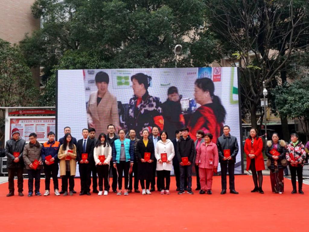 本次表彰的志愿者有来自社区的优秀居民志愿者、物业志愿者以及来自公司的优秀志愿者。在精彩的节目开始之前首先举行了优秀志愿者表彰大会在主持人的暖心介绍下,优秀志愿者们一一走上舞台,由社区领导为他们送上证书和奖品。这一年以来他们所有的努力与用心在那一刻都得到了在场所有人的认可。志愿者们用脸上洋溢的微笑告诉所有人,他们会继续努力,带给桔苑社区更多的爱与温暖。在表彰大会的最后,志愿者们也与社区领导们一起合影留念。