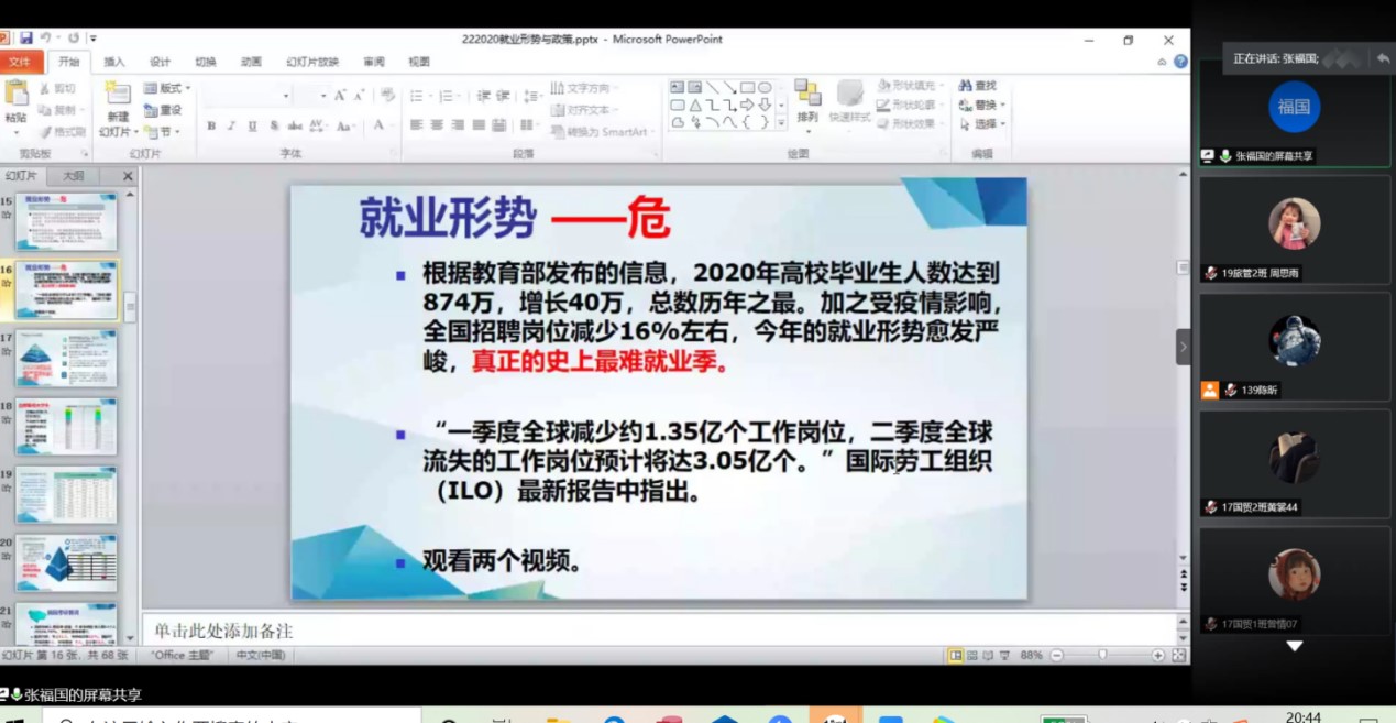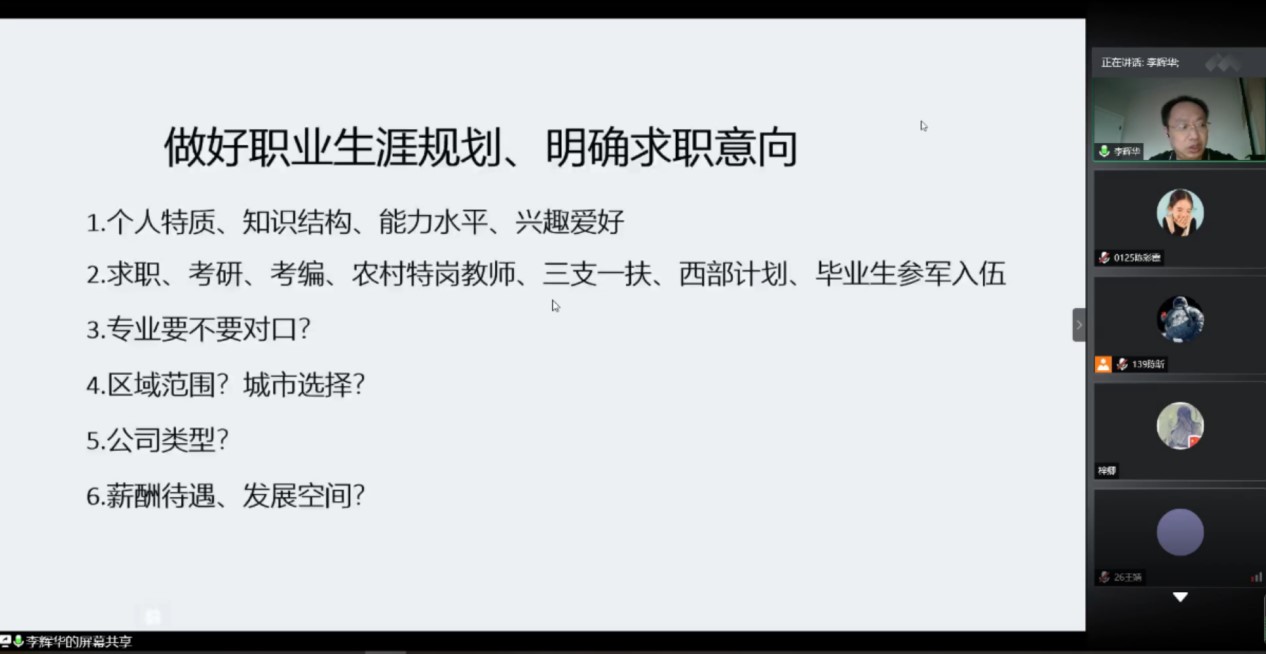 就业是民生之本,是国家发展的基石。党中央国务院提出“六保”“六稳”,放在第一位的就是保就业、稳就业。公司高度重视毕业生就业工作,把老员工就业工作作为公司的首要工作,公司党政一把手亲自抓毕业生就业工作。为落实国家关于加强老员工就业指导的要求,进一步提高毕业生职业能力与就业竞争力,公司于7月27日至8月1日为2021届毕业生们举办了线上就业指导系列课程讲座。公司党总支书记张福国、经理黄小喜、公司党总支副书记李辉华为同学们授课。
