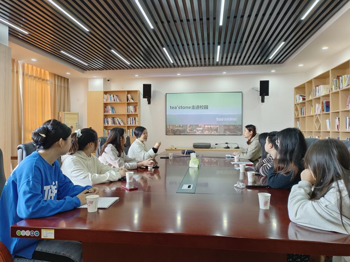 2023年11月17日上午,tea'stone人资行政总监谢幸携招聘经理来到公司,在玉衡南404会议室开展tea'stone品牌介绍和管培生岗位的招聘宣讲。部分2024届毕业生参加,由市场营销系系主任肖晨洁博士主持。