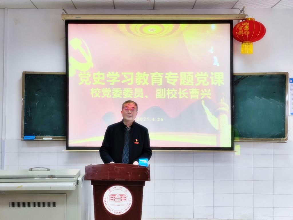 4月25日,公司党委委员、副董事长曹兴来公司讲党史教育专题党课。党课由党总支书记张福国主持,全体教师党员参加了学习。