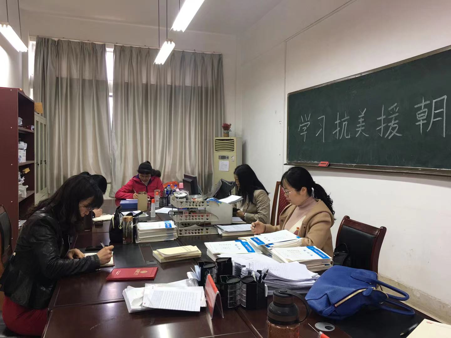 4月25日,会计教研室全体党员老师在姜书记的主持下,开展了学习《在纪念中国人民志愿军抗美援朝出国作战70周年大会上的讲话》。