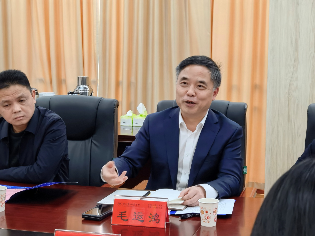 座谈会上,曹兴代表公司对客人的到来表示热烈欢迎,介绍了公司的历史沿革、学科专业、当前发展战略等基本情况。曹兴表示,通道在中国革命史上具有特殊意义,公司“红色一师”建设与通道县着力打造的“红色通道”非常契合,公司期望依托通道县的红色旅游资源优势,在研学、党性教育、舞蹈、写生、文创等方面加强校地合作、实现合作共赢。