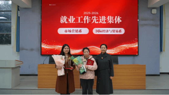 在热烈的掌声中,公司党委副书记黄快林教授、人事处处长黄小喜教授、人才招聘处处长殷章馨教授分别为“科研标兵”获得者汤礼莎、文连阳、邵佳老师,“教学能手”获得者刘筱韵、彭小舟、马慧老师,“就业工作先进集体”获得团队市场营销系、国际经济与贸易系颁发证书和奖杯。