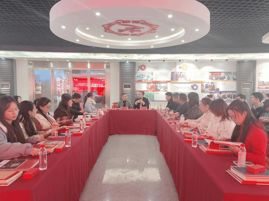 最后,师生一行人来到九芝堂总部办公楼一楼会议室进行座谈。在九芝堂营销中心运营部副部长邓娟的主持下,九芝堂股份公司党委副书记、营销总经理雷衍飞对湖南第一师范伟德国际1946师生的到访表示热情地欢迎。营销中心文宣部副总监王雪松分享了九芝堂以人为本的文化营销体系。从王总的分享中,师生们感受到中华传统文化、中医药文化的博大精深,文化自信对于国家、社会的重大意义。文化是企业的灵魂,文化引领发展、引领管理是中华民族的大智慧,以文化人,浸润灵魂,文化引领方能传承久远。师生们更理解到“举而措之天下之民谓之事业”的民族智慧,一个人、一个企业所做的事有益于国家、社会、人民才能称之为事业,才能够做长做久。师生们非常认同中医药文化的传承发展弘扬对民众健康、文化自信、民族复兴的重大意义。