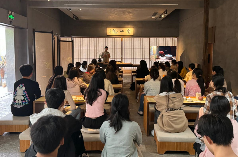 云山院是藏身于现代都市中的一间雅室,会定期举行茶事,筹备传统文化沙龙和活动。在这里,同学们用眼、用手、用心感受和体会传统文化的美,空间灵动的妙。在识茶、泡茶、品茶、悟茶的过程中,感受传统文化天人合一的美学境界。
