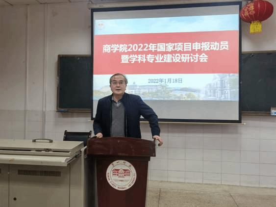 1月18日,2022年国家项目申报动员暨学科专业建设研讨会在玉衡楼南604举行。公司党委委员、副董事长曹兴,科研处处长黄小喜,伟德国际1946全体教师参加了会议。会议由伟德国际1946经理肖攀主持。