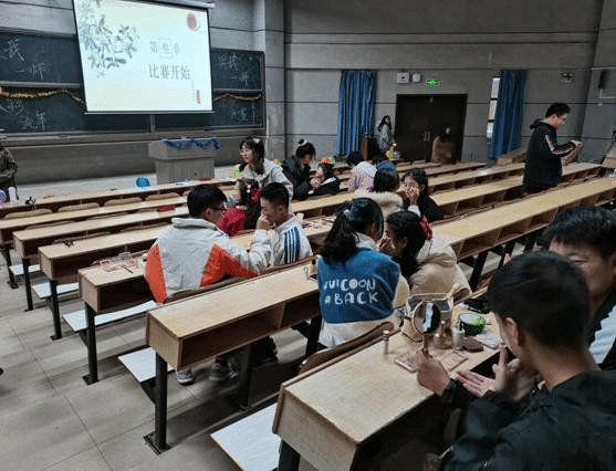 比赛开始后,化妆师们分别以“红色·主旋律”“品质·创新”“活力·青春”“幸福·校园”四个主题有条不紊地给模特上妆,其中有工作人员负责维持赛场秩序。展示过程中,参赛选手各有特色,大多数以“活力青春”为主题,有几组尤为特别,第一组脸上贴有花瓣,耳边挂有一朵小花,以此来表达秋意正浓符合一师五彩的秋天;第九组的高端科技,赛博朋克充分体现了“科技创新,虚拟未来”切合主题;第二十组的“活力青春、冬日恋歌”宛如雪地精灵。