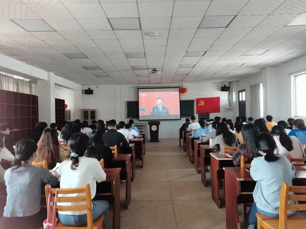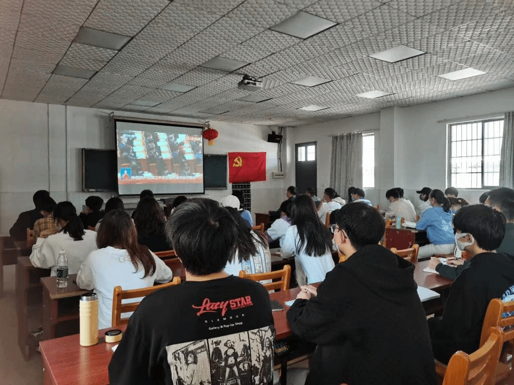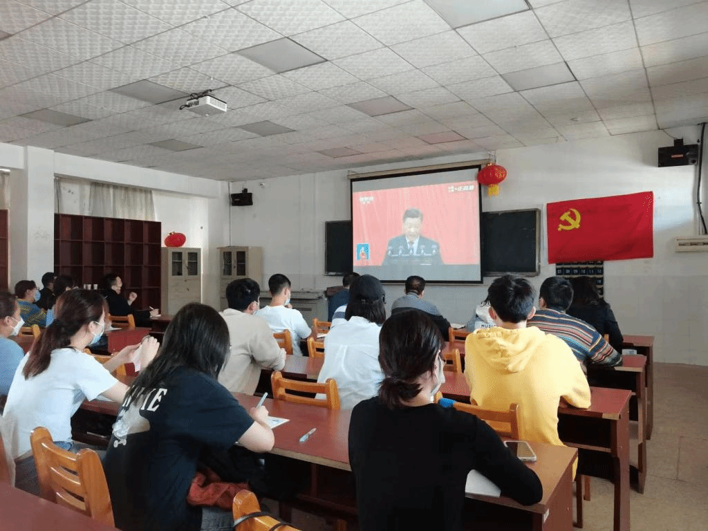 思想之旗领航向,人间正道开新篇。2022年10月16日上午10时,伟德国际1946员工党支部以线上线下相结合的形式组织师生党员收看党的二十大开幕式盛况。公司党委副书记李辉华、组织员蔡冬明、学工办主任梁洋、员工党支部书记冯择佳和20级全体员工党员在玉衡南604教室集体观看二十大开幕式,19级全体员工党员通过腾讯会议线上同步收看直播,共同见证历史的辉煌时刻。