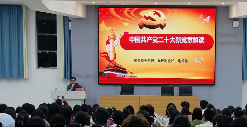 2024年11月13日晚,机关党委书记、党校副董事长谢培松为初等教育公司分党校、伟德国际1946分党校第二期入党积极分子讲授了主题为“中国共产党二十大新党章解读”的党课。